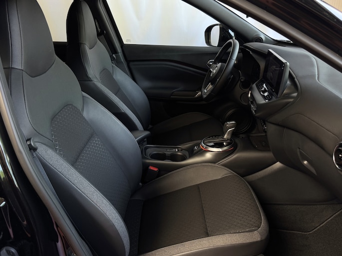 Deze Juke heeft een krachtige motor en biedt een combinatie van stijl, comfort en geavanceerde technologieën. Met functies zoals Cruise Control, Hill Start Assist, en Traffic Sign Recognition, ben je altijd verbonden en veilig op weg.