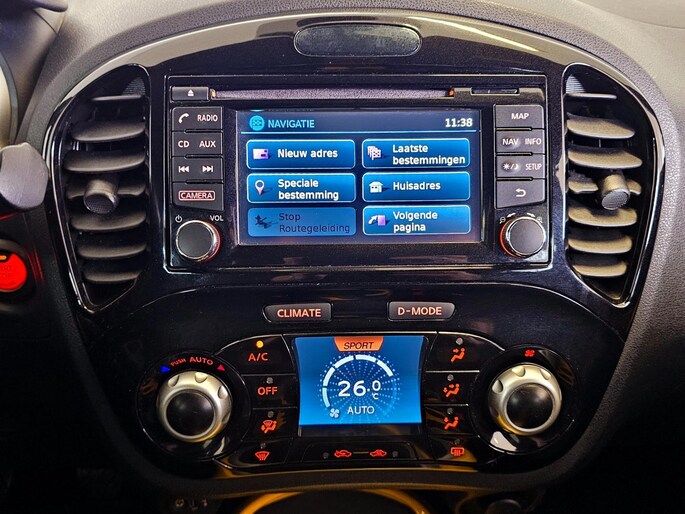 Kinderfietsje niet gezien bij het inparkeren? Dat gebeurt u nooit meer. Daar zorgt de achteruitrijcamera wel voor! U weet altijd waar u moet zijn, dankzij het navigatiesysteem. Tot de standaard uitrusting van deze auto hoort ook automatische airconditioning. Volumeknoppen, zenderschakelen, muten... U doet alles met de audiobediening op het stuur. Veilig en gemakkelijk. Het luxeniveau in deze Nissan is niet alleen gericht op comfort, maar ook op uw veiligheid. Tal van sensoren helpen u om de omgeving in de gaten te houden. De automatisch inschakelbare verlichting zorgt dat automatisch de verlichting wordt ingeschakeld als het donker wordt, wat bijvoorbeeld in tunnels erg handig is. En de regensensor zet de ruitenwissers aan zonder dat u eraan hoeft te denken. Natuurlijk behoren cruise control, keyless entry, lederen stuur, centrale deurvergrendeling met afstandsbediening, boordcomputer en lederen versnellingspook ook tot de uitrusting van deze complete auto.
