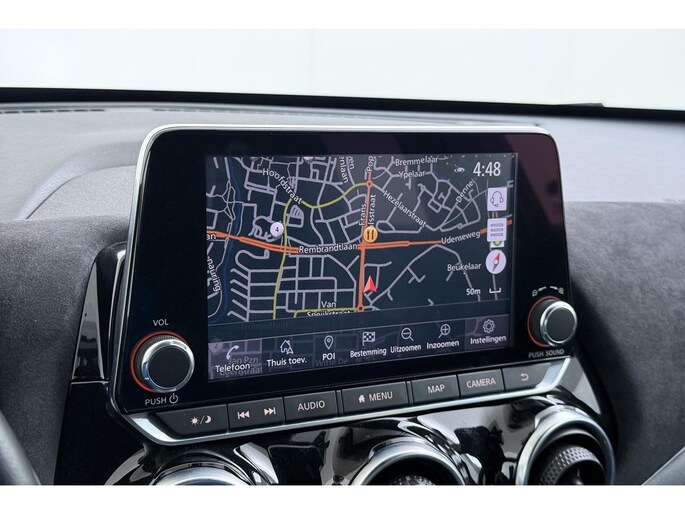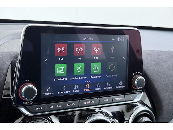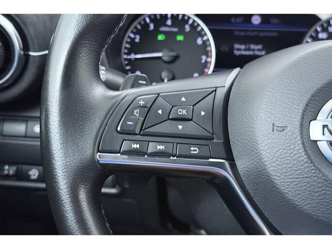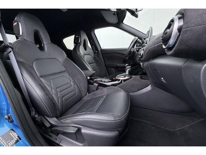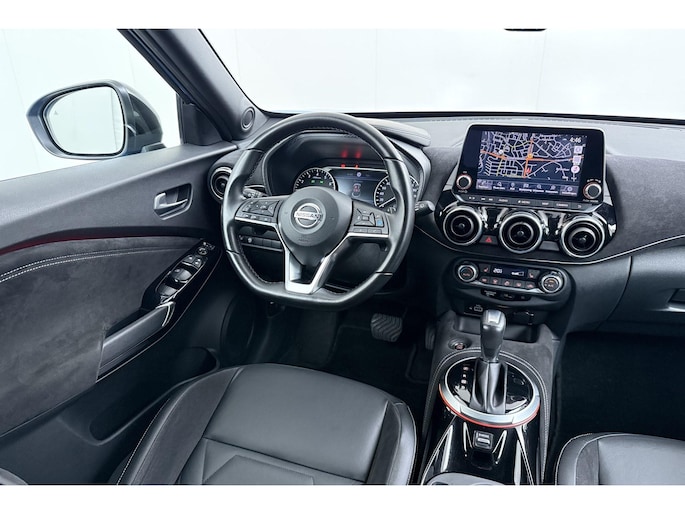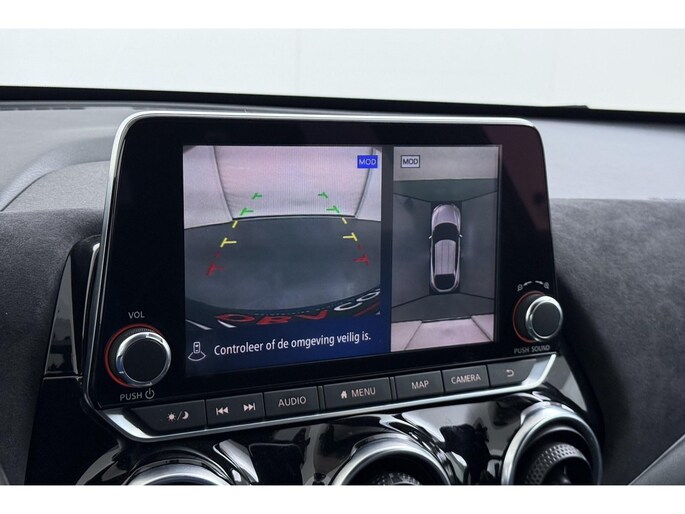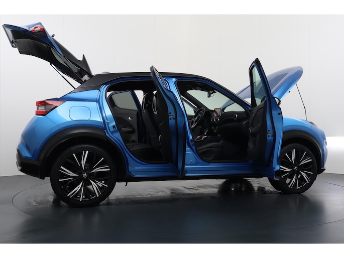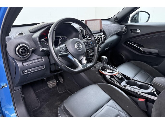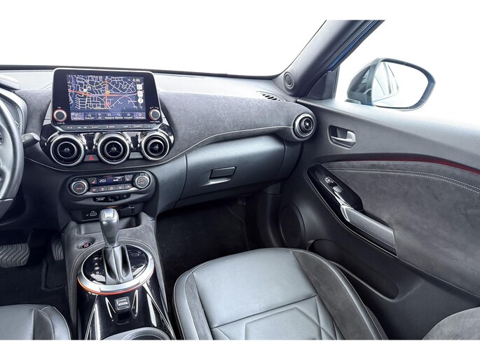 Zoals u mag verwachten van deze Nissan Juke is hij uitgerust met een reeks aan actieve veiligheidssystemen. Belangrijk voor uw veiligheid en die van uw passagiers is de verkeersbord-detectie in deze auto. Voorzien van het Lane-keeping systeem. Ofwel: blijf automatisch in je baan. Als een ander voertuig in uw dode hoek rijdt, waarschuwt het systeem met een signaal. Ook helpen het forward collision warning system, hill hold functie, brake assist, vermoeidheidsherkenning en bandenspanningcontrolesysteem, uw rit tot een veilige rit te maken.