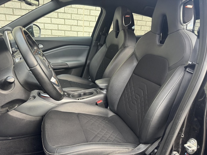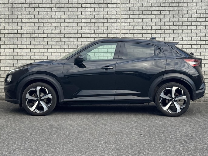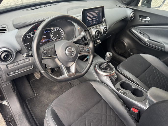 De 360 graden camera op deze auto biedt u een volledig, panoramisch zicht op de omgeving. Adaptive cruise control is veilig en comfortabel. De snelheidsregelaar houdt automatisch afstand tot het voertuig dat voor u rijdt. Deze Nissan Juke is 'connected'. Belangrijke functies worden permanent gemeten en zijn uit te lezen via een speciale app, ook op afstand. Zo kan muziek in de auto klinken: het high performance audiosysteem levert topklasse geluid! De sensoren van de achteropkomend verkeer waarschuwing registreren wat er gebeurt in de dode hoeken en achter u. U krijgt meteen een waarschuwing als u een achterligger over het hoofd ziet. Ook dashboard met spraakbediening, full map navigatiesysteem, automatische airconditioning, DAB ontvangst, regensensor en keyless entry horen tot de voorzieningen op deze auto.