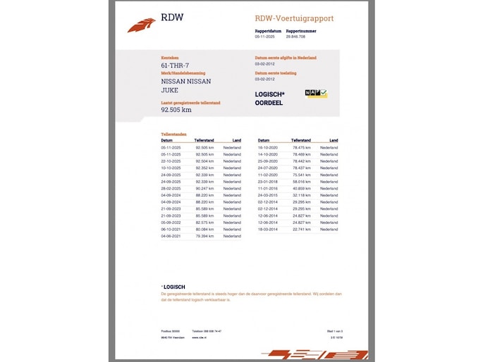 Kilometerstand gecontroleerd