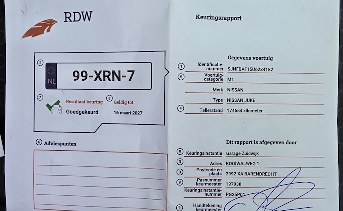 Kilometerstand gecontroleerd