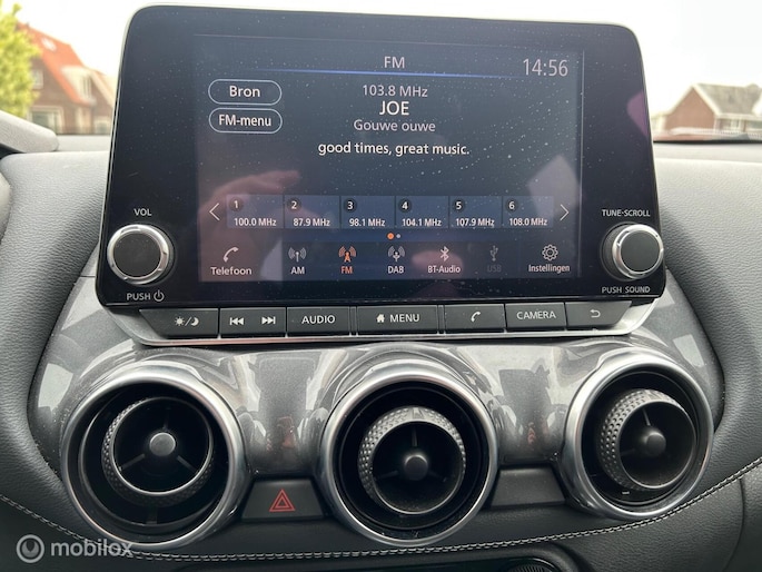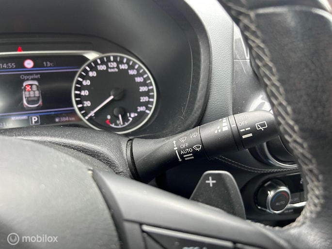 Het systeem controleert alle belangrijke functies en geeft die perfect weer via het digitale dashboard. Kom maar, kom maar, kom maar... ho! Prettig hoor, zo'n achteruitrijcamera. Als u 'm vraagt 'hoe gaat het?' geeft deze auto zelf het antwoord. Via de app op uw smartphone. U checkt de meters waar u maar wilt, of activeert diverse functies alvast. Met spraakbediening of de knoppen op het stuur regelt u het audiosysteem, terwijl u uw blik op de weg gericht houdt. De audio-installatie biedt daarbij glasheldere ontvangst dankzij DAB-ontvangst. Ook over uw schouder ziet u onderweg niet alles wat er aan de achterzijde gebeurt. Daarom heeft deze Nissan Juke een achteropkomend verkeer waarschuwing. Ook WIFI-hotspot, automatische airconditioning, schakelpaddles aan het stuur, regensensor, cruise control en keyless entry horen tot de voorzieningen op deze auto.