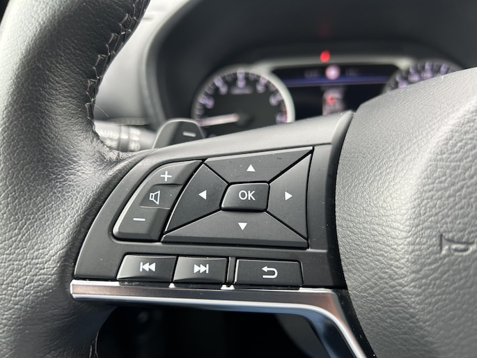 Een onopvallend paaltje of een overstekend kind achter de auto brengt risico's met zich mee. Gelukkig laat de achteruitrijcamera feilloos zien of alles veilig is. Bedient u de auto liever met uw stem? Dan is het goed om te weten dat spraakbediening aanwezig is. Wat is de onderhoudsstatus van deze auto? U checkt het snel, simpel en overal via uw smartphone. Ook over uw schouder ziet u onderweg niet alles wat er aan de achterzijde gebeurt. Daarom heeft deze Nissan Juke een achteropkomend verkeer waarschuwing. Met de DAB-ontvanger heeft u keuze uit talloze digitale radiozenders met de allerhoogste geluidskwaliteit. De uitrusting van deze Nissan is met sportstuur met schakelpaddels, cruise control, airconditioning en centrale deurvergrendeling met afstandsbediening behoorlijk compleet.