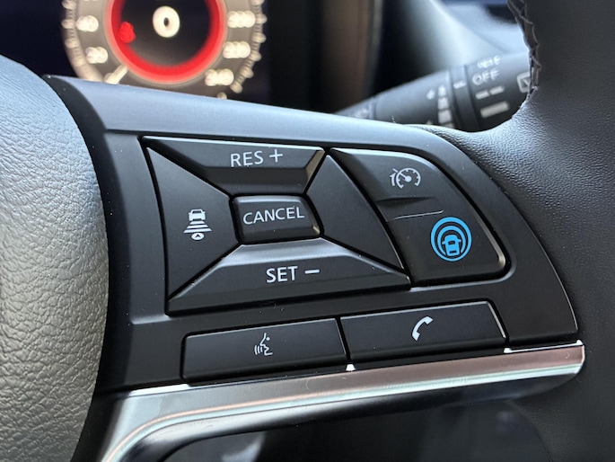 Met de nieuwste technologieën aan boord is deze Nissan in staat om zelf te reageren op potentieel gevaarlijke situaties op de weg. Een belangrijke bijdrage aan de veiligheid onderweg levert de verkeersbord-detectie. Ongemerkt buiten de rijstrook raken? Nee hoor, het Lane-keeping systeem waarschuwt en corrigeert. Het forward collision warning-systeem is constant alert en detecteert via sensor de afstand tot voorliggers. Wordt die te klein, dan volgt een automatische waarschuwing. De auto is ook uitgerust met hill hold functie, brake assist en bandenspanningcontrolesysteem.