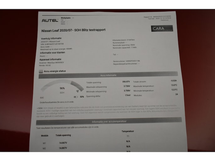 SOH 96% Connecta. 360°Camera Carpl dodeh det Stoelver.