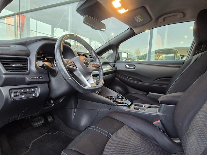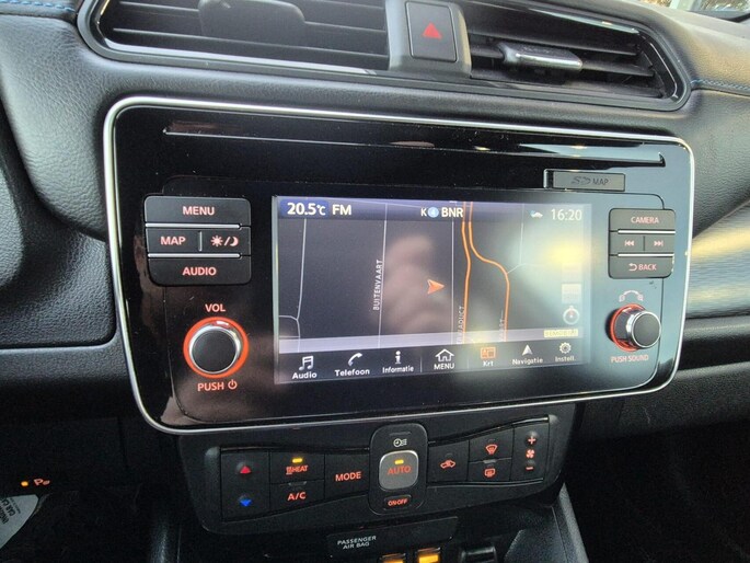 Met de Nissan LEAF kiest u voor het rijplezier van de toekomst. De volledig elektrische aandrijflijn zorgt voor krachtige prestaties en een sensationeel acceleratievermogen. Stil en stevig optrekken zonder extra uitstoot? De elektromotor zorgt ervoor! Laat de kou maar komen! U zit altijd goed met de heerlijke stoelverwarming. Ook de passagiers worden verwend, door de verwarmde achterbank. Natuurlijk behoren 17 inch lichtmetalen velgen, LED koplampen, donker getint glas achter, in delen neerklapbare achterbank en LED-achterlichten ook tot de uitrusting van deze complete auto.