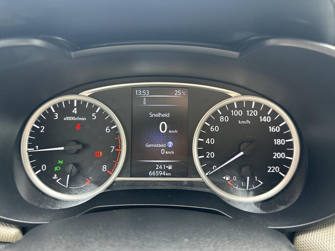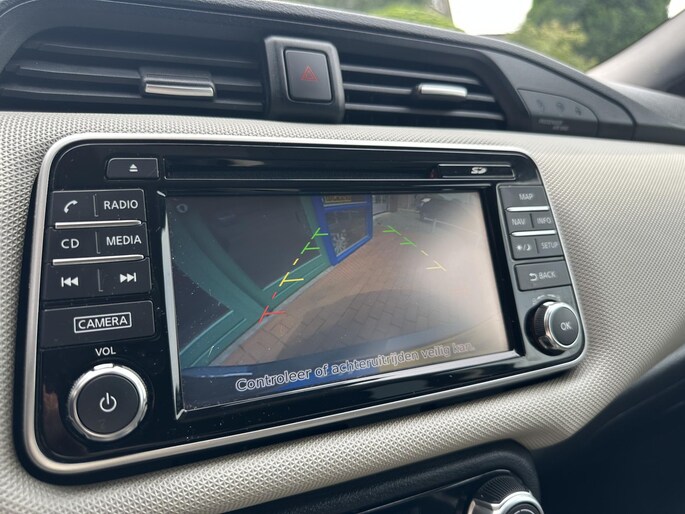 Met de achteruitrijcamera ziet u precies wat er achter de auto gebeurt. Laat u onderweg niet afleiden, de bediening van het audiosysteem en ook het full map navigatiesysteem gaat met knoppen op het stuur. Natuurlijk is de audio-installatie voorzien van DAB-ontvangst. Natuurlijk is er ook automatische airconditioning aanwezig. Om de veiligheid onderweg te verhogen, heeft deze Nissan zowel een automatisch inschakelbare verlichting als een regensensor aan boord, zodat hij zelf de verlichting en de ruitenwissers kan inschakelen. Meer rijcomfort en minder brandstofgebruik? Even de cruise control instellen en dan ontspannen rijden! Ook lederen stuur, centrale deurvergrendeling met afstandsbediening en boordcomputer horen tot de voorzieningen op deze auto.
