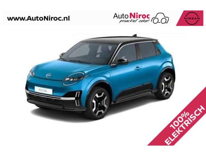 Deze Nissan Micra staat in voorraadbestelling en is beschikbaar voor de verkoop. Rijd als een van de eersten in de volledig nieuwe Nissan Micra. Als zakelijke rijder profiteert u van de lagere 16% bijtelling over € 30.000 fiscale waarde. Luxe uitrusting en voorzien van het grote 52kWh batterijpakket met 416 km rijbereik!
