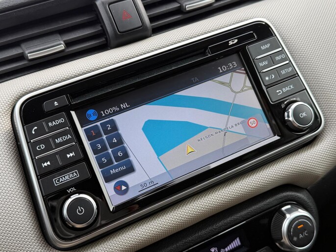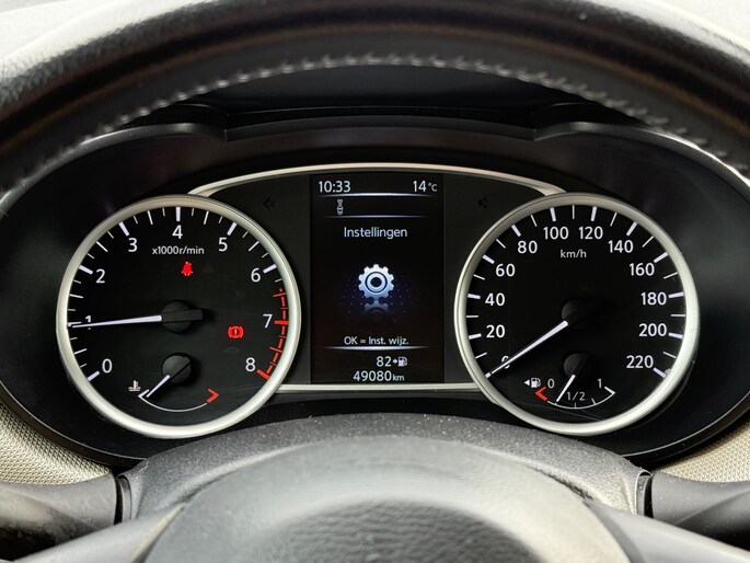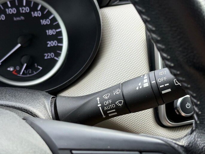 Onder alle omstandigheden perfect zicht op wat zich achter de auto afspeelt: de achteruitrijcamera zorgt ervoor! Kaartlezen is verleden tijd, dankzij het aanwezige navigatiesysteem. Met de automatische airconditioning selecteert u de gewenste temperatuur. Het systeem doet de rest. Switchen van radiozender of het geluid dempen - het gaat gemakkelijk en veilig dankzij de audiobediening op het stuur. Geniet van een ruime selectie digitale radiostations met de DAB-ontvanger. U bent in deze Nissan ook voorzien van regensensor, cruise control, lederen stuur, centrale deurvergrendeling met afstandsbediening en boordcomputer.