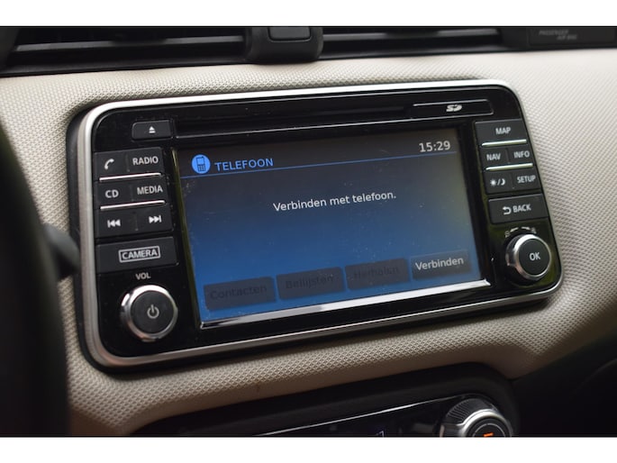 Onder alle omstandigheden perfect zicht op wat zich achter de auto afspeelt: de achteruitrijcamera zorgt ervoor! Met de knoppen op het stuur regelt u het audiosysteem en het full map navigatiesysteem, terwijl u uw blik op de weg gericht houdt. De audio-installatie biedt daarbij glasheldere ontvangst dankzij DAB-ontvangst. Tot de standaard uitrusting van deze auto hoort ook automatische airconditioning. Het hoort bij een intelligente auto als deze dat hij zelf in staat is om zijn omgeving in de gaten te houden. Dat doet deze Nissan met een automatisch inschakelbare verlichting en een regensensor. Kleine ritjes, grote reizen - altijd een relaxte aankomst dankzij de cruise control. Ook is de Nissan uitgerust met: lederen stuur, centrale deurvergrendeling met afstandsbediening en boordcomputer.