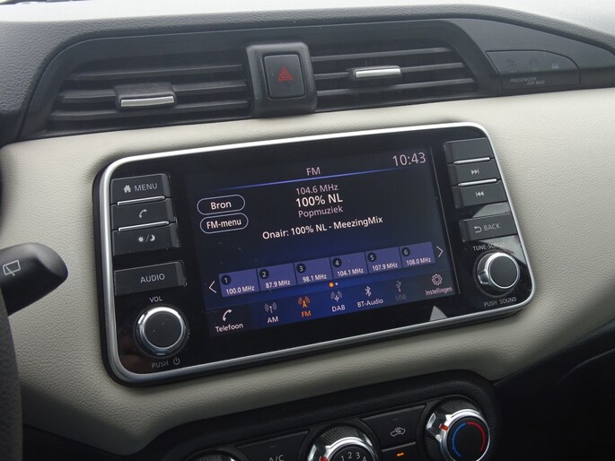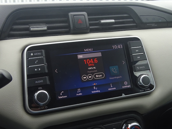 Een comfortabele rit is gegarandeerd dankzij de airconditioning in deze Nissan Micra. Of u nu in de hitte van de zomer of de kou van de winter rijdt, met de airco blijft het altijd aangenaam in de auto. Bovendien is deze hatchback uitgerust met Apple Carplay en Android Auto, waardoor u moeiteloos de telefoon kunt verbinden met het infotainmentsysteem. Zo geniet u van uw favoriete muziek, navigatie en handsfree bellen terwijl u onderweg bent.