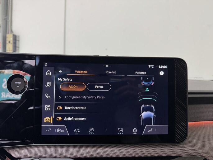 Tijdens de rit wordt u als bestuurder ondersteund door verschillende systemen die de weg en uw omgeving in de gaten houden. Onderweg fungeert de verkeersbord-detectie als het ware als uw bijrijder en attendeert u op de verkeersborden langs de weg. Onbedoeld buiten de rijstrook raken wordt voorkomen door het Lane-keeping systeem. Als een fietser of andere weggebruiker zich net buiten uw zichtveld naast de auto bevindt, slaat de actieve dodehoekdetectie meteen alarm. Verder is deze auto uitgerust met forward collision warning system, hill hold functie, brake assist, vermoeidheidsherkenning en bandenspanningcontrolesysteem.