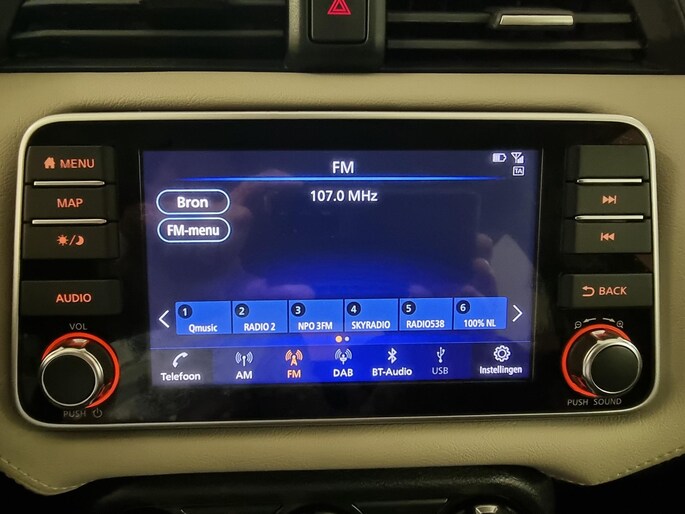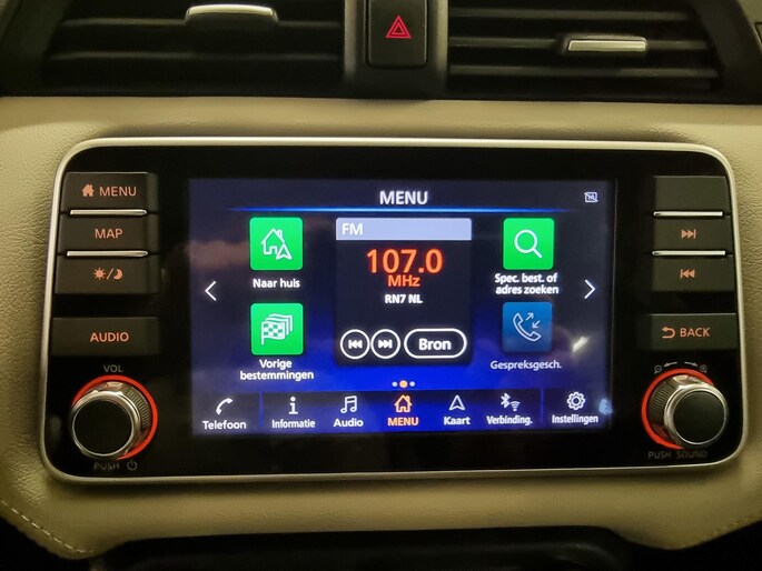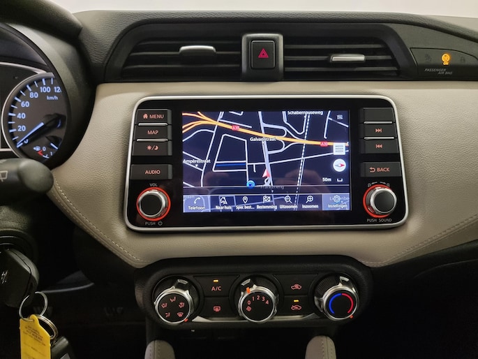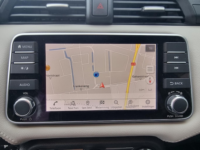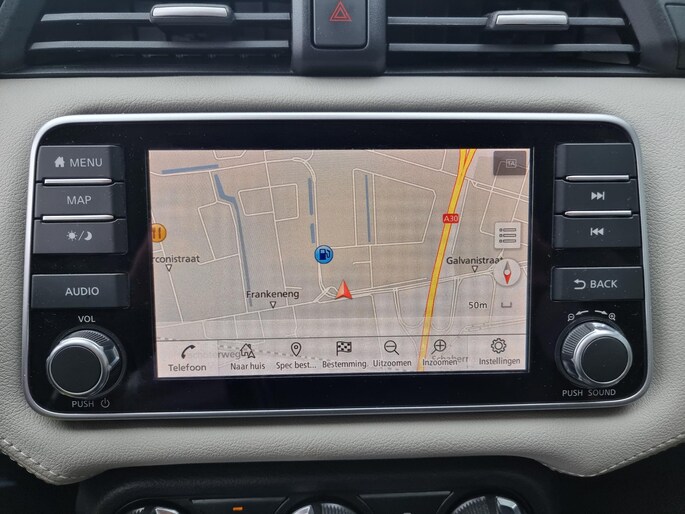 Geavanceerde technische systemen houden tijdens elke rit het verkeer in de gaten en reageren op potentieel gevaarlijke situaties. In het instrumentarium kunt u bovendien de verkeersborden zien die u onderweg tegenkomt. Zo helpt deze Nissan u om veiliger te rijden. Het Lane-keeping systeem let constant op en waarschuwt of corrigeert als u onoplettend over de lijnen van de rijstrook gaat. Op een kop-staartbotsing zit niemand te wachten. Daarom is de forward collision warning onderweg constant alert en berekent via een sensor de veilige afstand tot voorliggers. Bovenop deze veiligheidsfeatures heeft deze Nissan bovendien hill hold functie, brake assist en bandenspanningcontrolesysteem.