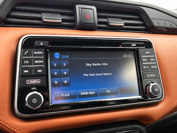De functie van deze 360 graden camera is vooral nuttig in smalle straatjes waar het zicht beperkt is. De luidsprekers van het high performance audiosysteem omringen u met een uitgebalanceerd geluid. De kortste weg, de zuinigste weg, de snelste weg... elke weg is te vinden met het full map navigatiesysteem. Ook over uw schouder ziet u onderweg niet alles wat er aan de achterzijde gebeurt. Daarom heeft deze Nissan Micra een achteropkomend verkeer waarschuwing. Dankzij automatische airconditioning is het interieur behaaglijk warm of verfrissend koel. Wat u ook in deze auto kunt vinden zijn DAB ontvangst, regensensor, cruise control, keyless entry, lederen stuur en isofix-aansluiting.