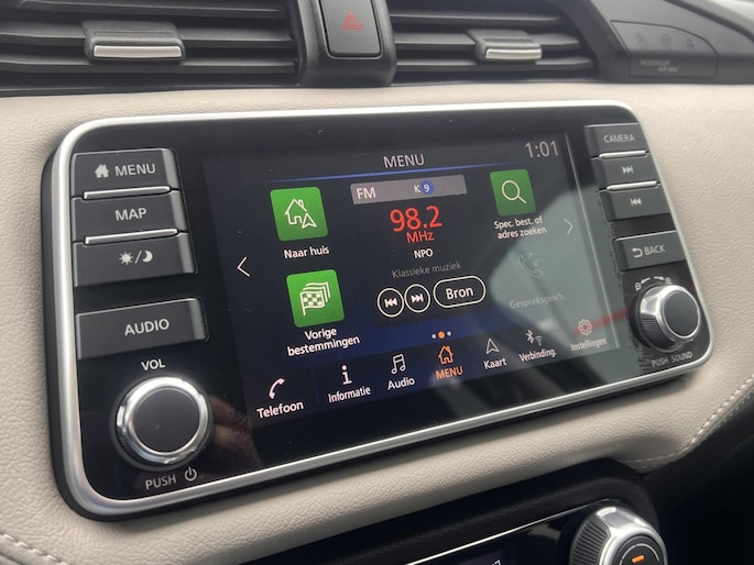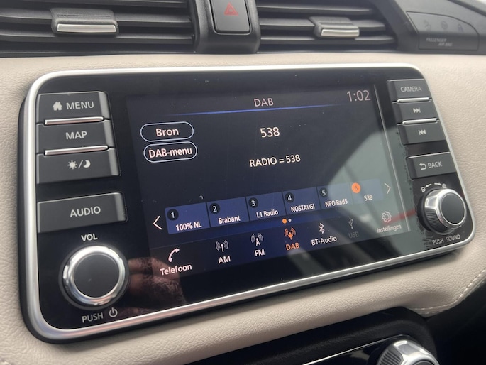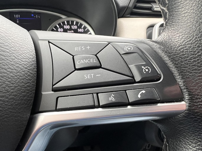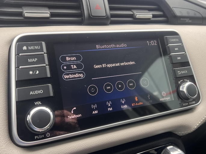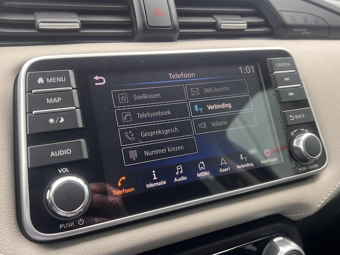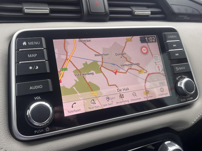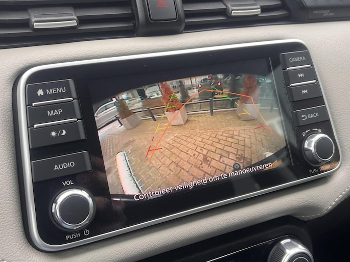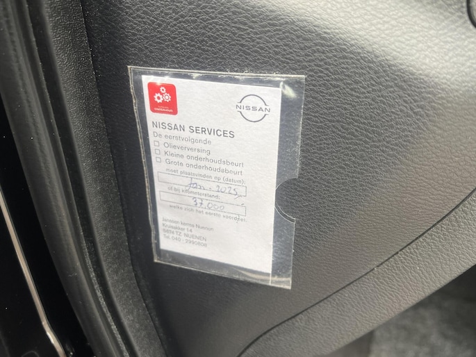 Parkeer en kijk niet om! De achteruitrijcamera doet dat voor u. Als u regelmatig met een aanhanger of een fietsendrager op pad bent, is de afneembare trekhaak een praktische extra. Het navigatiesysteem en het audiosysteem (met DAB-ontvangst!) bedient u met knoppen op het stuur. De kans op een kop-staart botsing wordt sterk gereduceerd door het systeem van achteropkomend verkeer waarschuwing. Het hoort bij een intelligente auto als deze dat hij zelf in staat is om zijn omgeving in de gaten te houden. Dat doet deze Nissan met een automatisch inschakelbare verlichting en een regensensor. U bent in deze Nissan ook voorzien van cruise control, keyless entry, airconditioning, automatisch dimmende binnenspiegel, isofix-aansluiting en bagage afdekhoes.