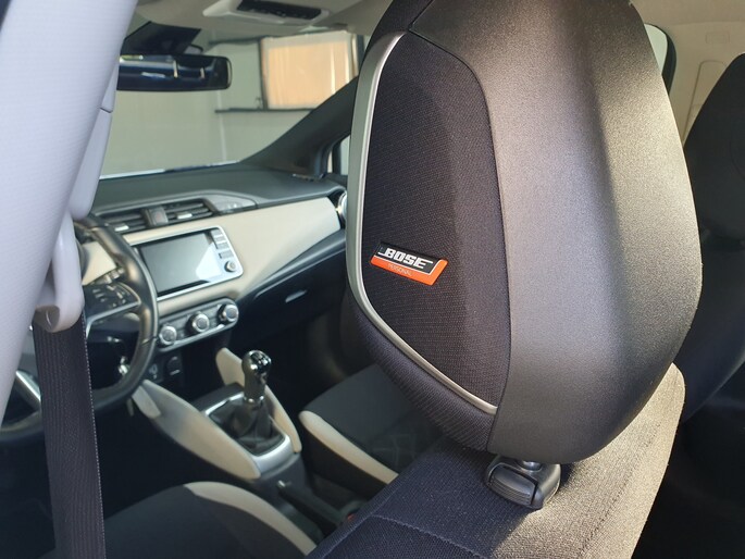 Formidabele geluidskwaliteit en een compleet spectrum van klank wordt geleverd door het high performance audiosysteem. Liever gepiep dan gekraak? Dan zult u blij zijn met de aanwezige parkeersensoren! Het hoort bij een intelligente auto als deze dat hij zelf in staat is om zijn omgeving in de gaten te houden. Dat doet deze Nissan met een automatisch inschakelbare verlichting en een regensensor. Niet te snel, niet langzaam maar precies goed: laat dat maar over aan de cruise control. Het maakt niet uit hoe warm het buiten is, want met de airconditioning bepaalt u zelf de binnentemperatuur. Ook full map navigatiesysteem, DAB ontvangst, automatisch dimmende binnenspiegel, centrale deurvergrendeling met afstandsbediening, bagage afdekhoes en boordcomputer zijn aan boord.