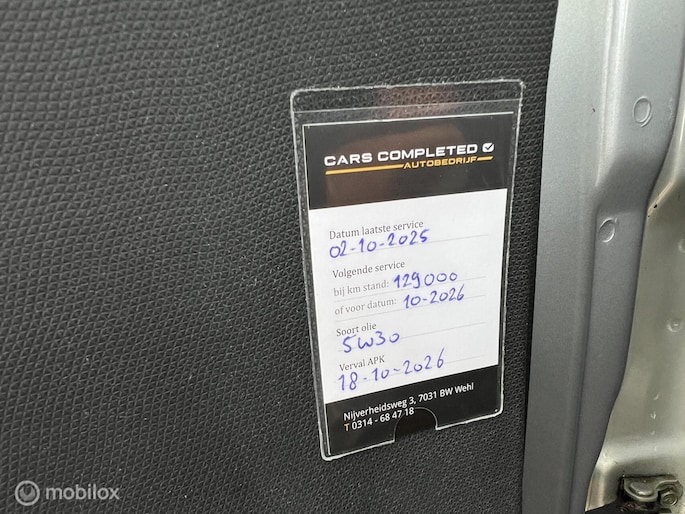2 sleutels en boekjes aanwezig. De laatste onderhoudsbeurt is uitgevoerd bij 114Dkm. De volgende onderhoudsbeurt is pas weer nodig bij 129.000 km. De APK-keuring is geldig tot oktober 2026.