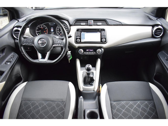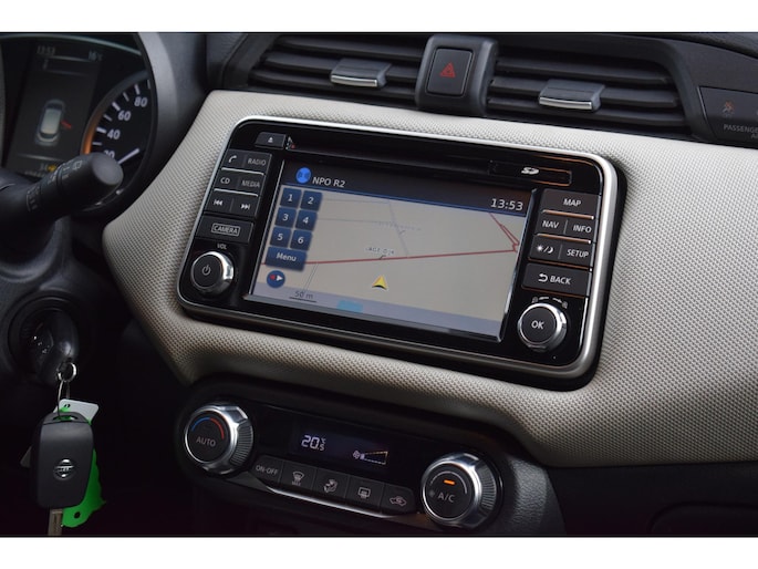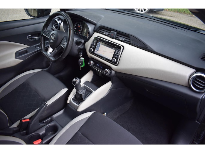 Van buiten gezien zou u niet denken dat-ie van binnen zo ruim is. En zo zit deze Nissan Micra vol met nog veel meer aangename verrassingen. Dat begint al bij de pomp. De aandrijving van deze Nissan wordt verzorgd door een driecilinder benzinemotor en een handgeschakelde vijfversnellingsbak. Tot de uitrusting van deze Nissan behoren ook 16 inch lichtmetalen velgen, LED-dagrijverlichting, extra getint glas, in delen neerklapbare achterbank en snelheidsafhankelijke stuurbekrachtiging.