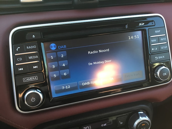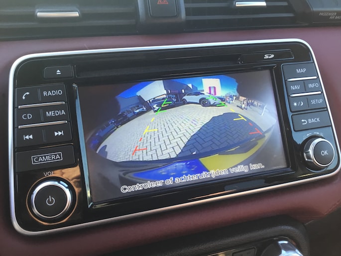 Achteruitrijden en inparkeren worden een eitje dankzij de achteruitrijcamera. Als u regelmatig met een aanhanger of een fietsendrager op pad bent, is de afneembare trekhaak een praktische extra. In deze auto klinkt uw favoriete muziek nog beter dankzij het high performance audiosysteem. Prettig, altijd weten waar je moet zijn en hoe lang de rit nog duurt met het full map navigatiesysteem. Bij de luxe van deze auto hoort ook automatische airconditioning. Ook is de Nissan uitgerust met: DAB ontvangst, regensensor, cruise control, keyless entry, centrale deurvergrendeling met afstandsbediening en boordcomputer.
