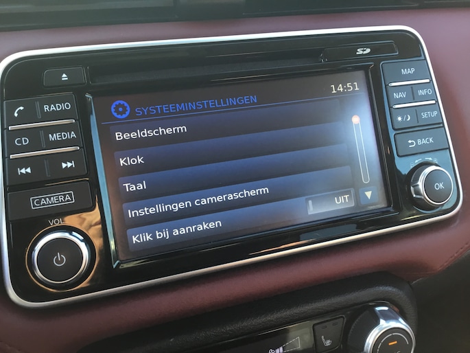 Pragmatisch en veilig als deze auto is, beschikt hij over diverse veiligheidssystemen. In het instrumentarium laat de verkeersborddetectie de actuele verkeersborden zien. Het Lane-keeping systeem let constant op en waarschuwt of corrigeert als u onoplettend over de lijnen van de rijstrook gaat. Wanneer u hard moet remmen, is elke decimeter verkorting van de remweg essentieel. Voor extra remkracht zorgt dan de Brake Assist. In deze Nissan vinden we verder een hill hold functie en bandenspanningcontrolesysteem.