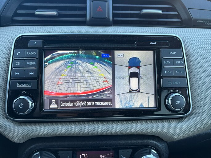 Of u nu achteruit rijdt, parkeert of een smalle straat inslaat, de 360 graden camera op deze auto, mogelijk gemaakt door vier camera's, biedt een perfect beeld van uw omgeving. Elk genre muziek komt tot z'n recht. Het high performance audiosysteem is perfect in te regelen op uw smaak! Het comfort wordt verhoogd door de aanwezige automatische airconditioning. Hoeveel ruimte u nog heeft bij het insteken? De parkeersensoren laten het weten! Da's gemakkelijk! In deze Nissan kunt u zich concentreren op het verkeer, terwijl de auto de omgeving voor u in de gaten houdt. Een automatisch inschakelbare verlichting zorgt dat de verlichting aangaat als het donkerder wordt - in tunnels bijvoorbeeld - en de regensensor schakelt de ruitenwissers in als het nodig is. U hoeft er niets aan te doen. Extra opties op deze auto zijn: navigatiesysteem, cruise control, keyless entry, lederen stuur, centrale deurvergrendeling met afstandsbediening en boordcomputer.