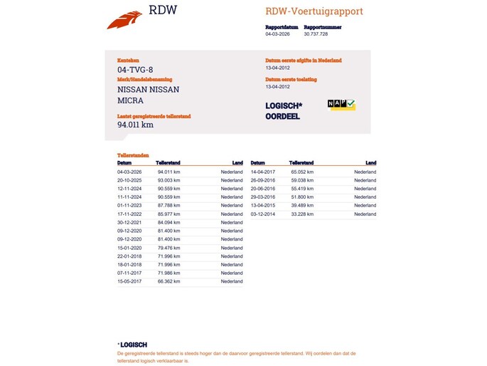 Kilometerstand gecontroleerd