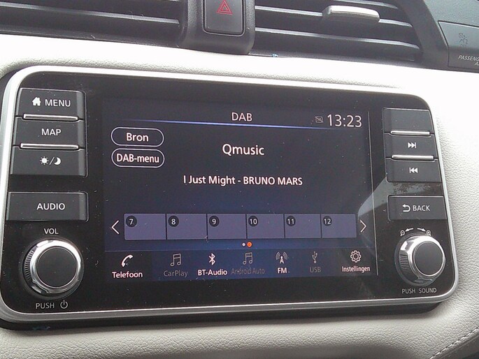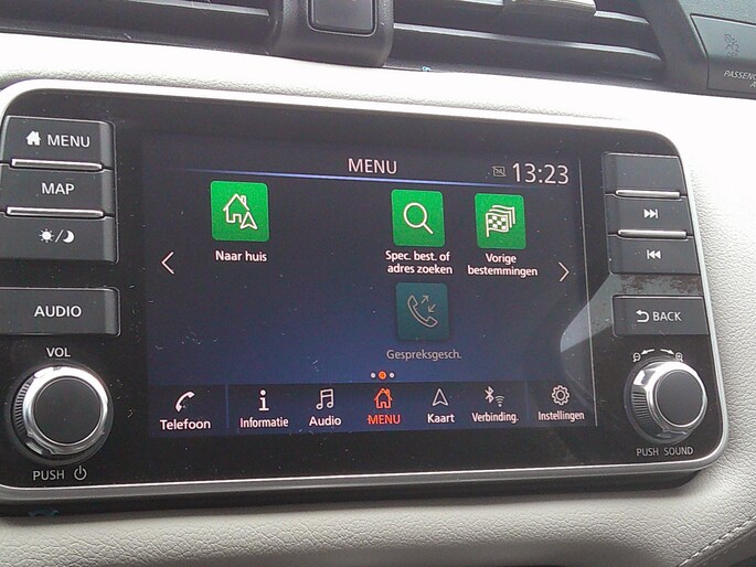 Houdt uw ogen op de weg en uw handen aan het stuur. Het audiosysteem met dab-ontvangst bedient u vanaf het stuurwiel. Inparkeren zonder angst voor schade. De parkeersensoren helpen u om moeiteloos in de kleinste parkeervakken te manoeuvreren. Het luxeniveau in deze Nissan is niet alleen gericht op comfort, maar ook op uw veiligheid. Tal van sensoren helpen u om de omgeving in de gaten te houden. De automatisch inschakelbare verlichting zorgt dat automatisch de verlichting wordt ingeschakeld als het donker wordt, wat bijvoorbeeld in tunnels erg handig is. En de regensensor zet de ruitenwissers aan zonder dat u eraan hoeft te denken. Natuurlijk is er ook cruise control aan boord, waarmee u meer ontspannen en zuiniger rijdt. En natuurlijk is er ook gedacht aan airconditioning. Met automatisch dimmende binnenspiegel, centrale deurvergrendeling met afstandsbediening, bagage afdekhoes, boordcomputer en verstelbaar stuur is deze auto helemaal compleet.