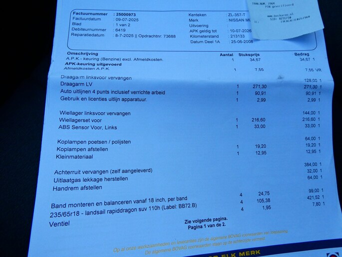 | Wegenbelasting/3mnd | € 333 - € 365 |
