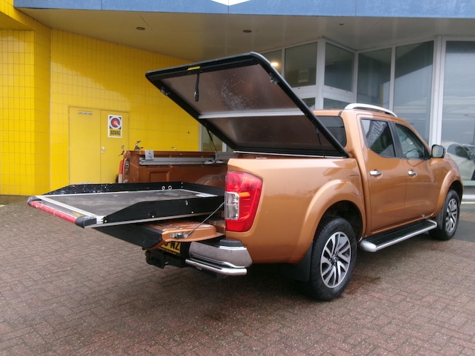 Nissan Navara 2.3 DCI 4x4 dubbele cabine, 190 pk (140 kW), trekhaak 3500kg., 360 graden camera, achteruitrijcamera, stoelverwarming, trekhaak 3500kg, alu laadbak deksel, uitschuif plateau in laadbak, vierwiel aandrijving, enz.