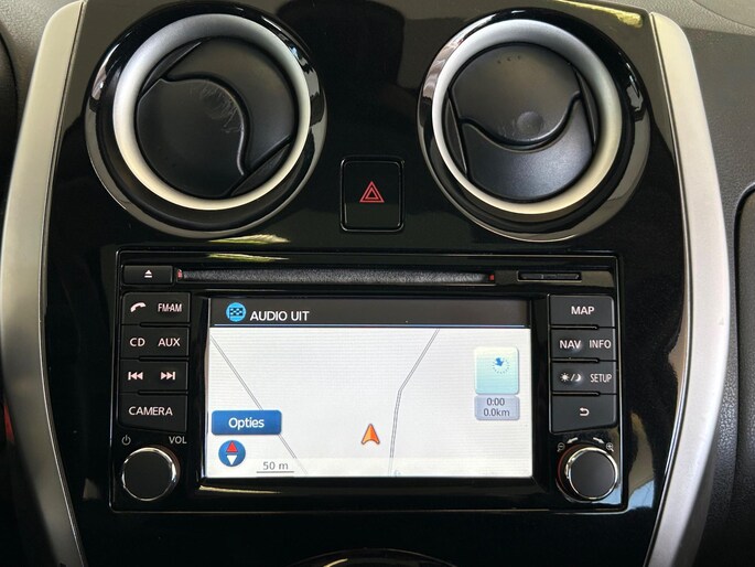 Zoals u mag verwachten van deze Nissan Note is hij uitgerust met een reeks aan actieve veiligheidssystemen. Mooi binnen de lijnen van de rijstrook blijven? Het Lane-keeping systeem helpt altijd een handje. De Brake Assist vergroot de veiligheid door bij een noodsituatie extra power te leveren op het remsysteem.