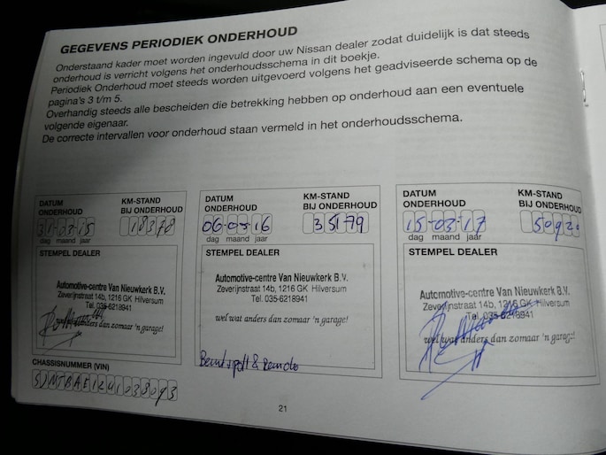 Onderhoudsboekjes: Aanwezig