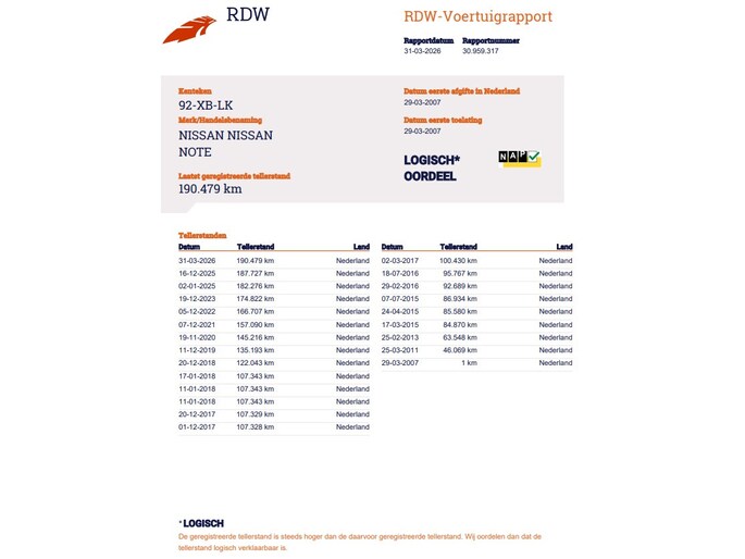 Kilometerstand gecontroleerd