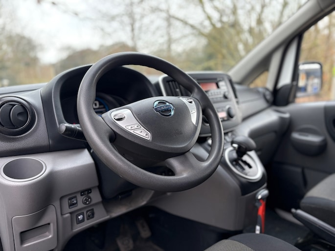 Nissan E-NV200 Optima 40 kWh, afkomstig van de eerste eigenaar en altijd goed onderhouden. Mooi uitgevoerd met onder andere: achteruitrijcamera, cruise control, airconditioning, trekhaak, dubbele schuifdeuren, elektrisch pakket, NAP