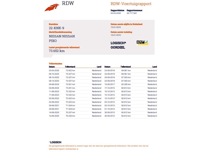 Je bod op Nissan Pixo is geplaatst