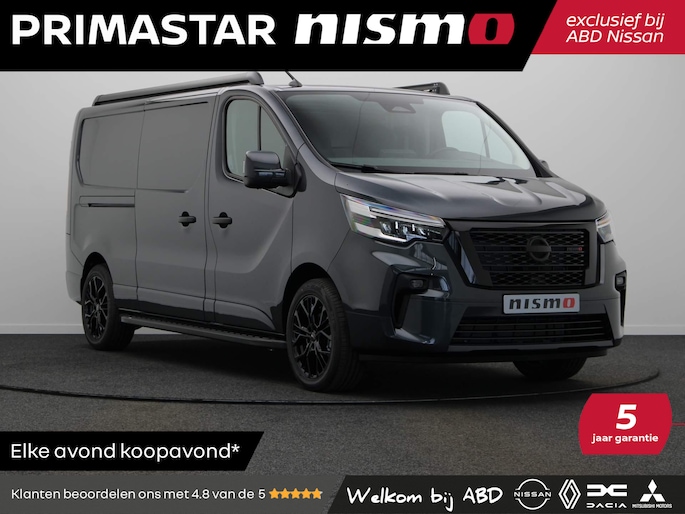 Uniek bij ABD: de Nissan Primastar Nismo! Nismo staat voor Nissan Motorsport en is de performance tak van Nissan, waar passie voor autosport en innovatieve techniek samenkomen. De uitvoeringen zijn gericht op echte rijliefhebbers die meer verwachten van een auto dan alleen van A naar B te rijden. Nismo is bekend van onder andere de Nissan GTR en 370Z. De Primastar Nismo uitvoering staat aan de top van het gamma en is in beperkte oplage verkrijgbaar bij ABD. Deze Primastar Nismo+ is onder ander voorzien van: 2.0dCi motor, laadruimte betimmering, 18" lichtmetalen velgen, sidesteps, roofrails, navigatie, Apple Carplay en Android auto, achteruitrijcamera, LED koplampen, Nismo grill, Nismo bekleding en Nismo type aanduiding interieur & exterieur. Klaar om over te stappen? Dan profiteert u van een hoge korting, 5 jaar garantie. Prijs is exclusief rijklaarmaakkosten.