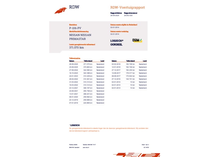 Kilometerstand gecontroleerd