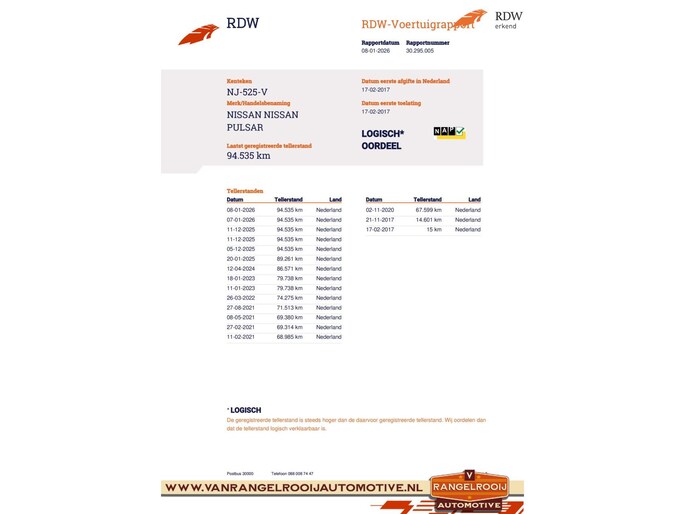 Kilometerstand gecontroleerd