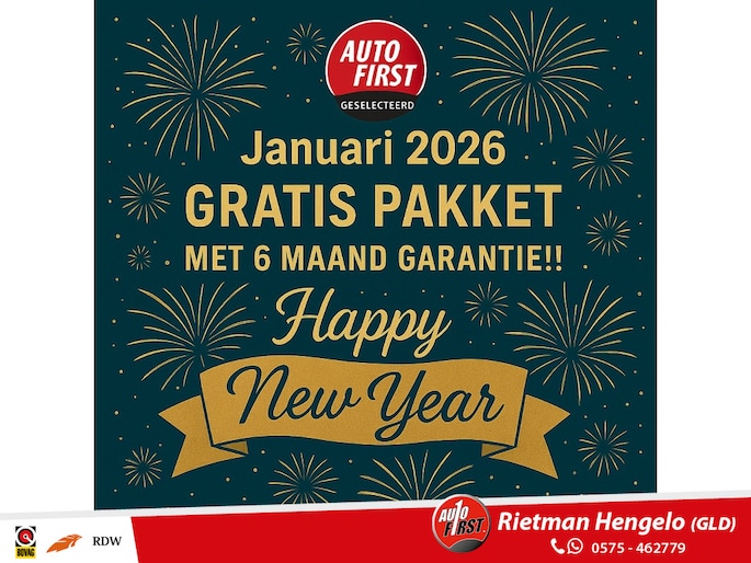 Afleverpakket Extra: € 575 (€ 575): Dit afleverpakket bevat: Huisgarantie; 4 wiel uitlijning controle, 6 maanden Rietman garantie gelijkwaardig aan Bovag garantie, 12 maand Mobiliteitsgarantie, Afleveringspakketten Extra en Compleet zijn niet mogelijk voor auto’s met een verkoop prijs onder €4500,- euro of met een km stand hoger dan 200.000km., Airco geserviced, Distributieriem vervanging indien nodig binnen 1 jaar en/ of 15.000 km, Nieuwe Apk keuring (minimaal 1 jaar geldig), Onderhoudsbeurt volgens fabrieksschema, Volledige reiniging interieur en poetsen, ½ volle tankinhoud