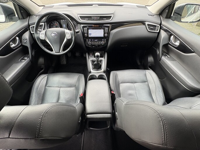 Dankzij de automatische airconditioning blijft het interieur van de Nissan Qashqai altijd op de gewenste temperatuur, ongeacht de weersomstandigheden. Met het full map audio-navigatiesysteem vindt u altijd eenvoudig uw weg naar elke bestemming. De achteruitrijcamera en de rondomzicht camera zorgen ervoor dat parkeren en manoeuvreren moeiteloos verlopen.