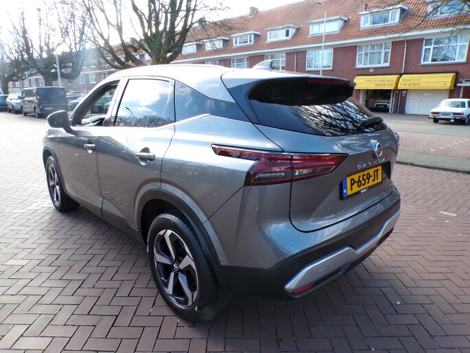 U zoekt een betrouwbare auto met uitstekende rijkwaliteiten? Dan is deze Nissan Qashqai een geweldige keuze! Deze SUV is uitgerust met een benzinemotor en een handgeschakelde zesversnellingsbak. Houdt u van een stijlvolle uitvoering? Dan zal het lederen interieur u zeker bevallen. Met het grote glazen panoramadak voelt het alsof u in een cabrio zit. De slimme koplampen gebruiken de allernieuwste matrix LED-verlichting. Altijd maximaal zicht, nooit verblinding bij de tegenligger. Verder is de Nissan uitgerust met: 18 inch lichtmetalen velgen, aluminium dakrailing, elektrisch inklapbare buitenspiegels, in hoogte verstelbare passagiersstoel, donker getint glas achter en in delen neerklapbare achterbank.
