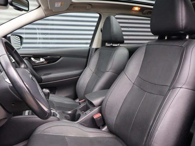 Het eigentijdse ontwerp en de toonaangevende techniek maken van iedere Japanse auto een kwaliteitsproduct. Dat is ook te merken aan deze Nissan Qashqai. De aandrijving van deze Nissan wordt verzorgd door een viercilinder motor en een handgeschakelde versnellingsbak. De stijlvolle, luxe uitstraling is inbegrepen in de vorm van leren bekleding. Koude start? Niet met de verwarmbare voorstoelen! Geniet van de lichtinval en het uitzicht van het grote glazen panoramadak. Natuurlijk behoren 19 inch lichtmetalen velgen, LED koplampen, extra getint glas en in delen neerklapbare achterbank ook tot de uitrusting van deze complete auto.