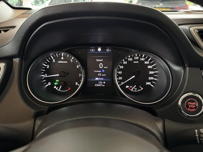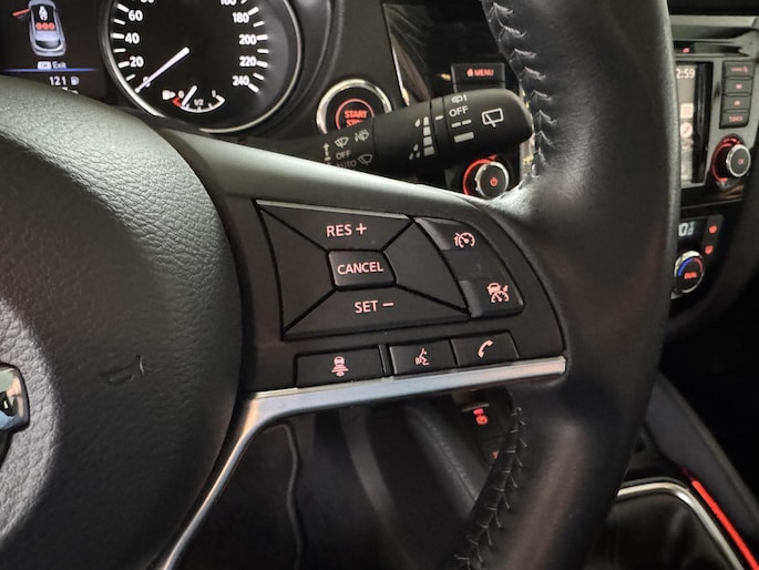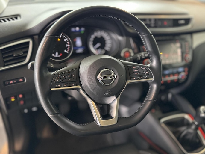 Zoals u mag verwachten van deze Nissan Qashqai is hij uitgerust met een reeks aan actieve veiligheidssystemen. Een belangrijke bijdrage aan de veiligheid onderweg levert de verkeersbord-detectie. Onbedoeld buiten de rijstrook raken wordt voorkomen door het Lane-keeping systeem. Vermoeid achter het stuur zitten vergroot de kans op een ongeval. Vermoeidheidsherkenning waarschuwt tijdig als u aan een rustpauze toe bent. De auto is ook uitgerust met dodehoekdetectie, hill hold functie, brake assist en bandenspanningcontrolesysteem.