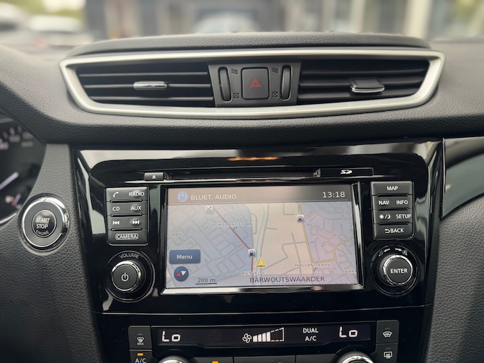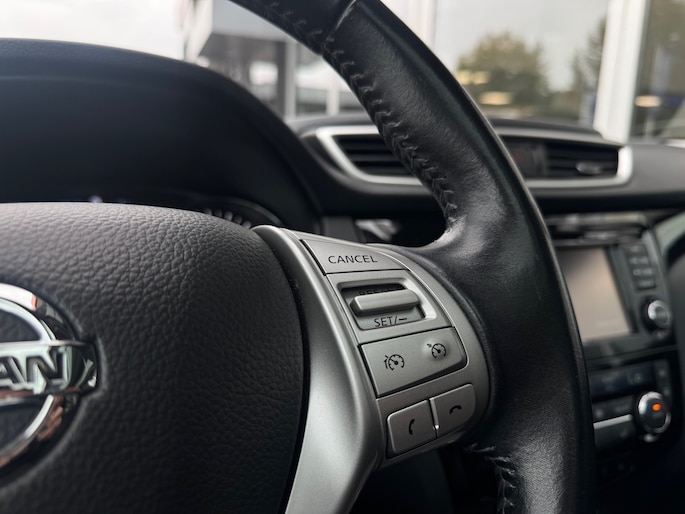 Zoals u mag verwachten van deze Nissan Qashqai is hij uitgerust met een reeks aan actieve veiligheidssystemen. Dat de auto steeds meer taken van de bestuurder overneemt, merkt u bijvoorbeeld aan het systeem voor verkeersbord-detectie in deze auto. Deze Nissan Qashqai is ook behulpzaam als het gaat om een rechte koers. Het Lane-keeping systeem signaleert en corrigeert als u onbedoeld de rijstrooklijnen dreigt te overschrijden. In druk verkeer en onoverzichtelijke situaties helpt het accident avoidance system mee om een aanrijding te vermijden. Bovenop deze veiligheidsfeatures heeft deze Nissan bovendien hill hold functie en bandenspanningcontrolesysteem.