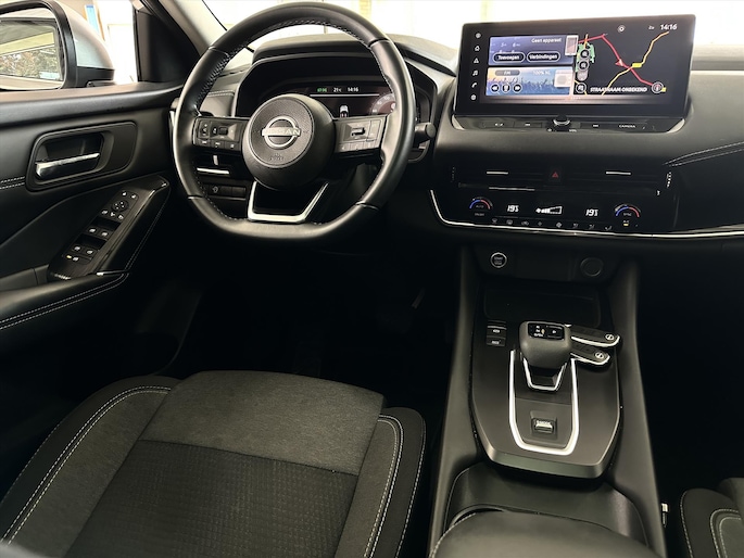 Nooit meer de weg kwijt: daarvoor zorgt het onboard navigatiesysteem. Met de automatische airconditioning selecteert u de gewenste temperatuur. Het systeem doet de rest. Voor een storingvrije radio-ontvangst zorgt de ingebouwde DAB-ontvanger. Een plekje vinden in de binnenstad is één, inparkeren is twee. Voor dat laatste heeft deze Nissan Qashqai prima parkeersensoren die u een handje helpen. Natuurlijk is een complete auto als deze ook voorzien van sensoren die de omgeving in de gaten houden. Deze Nissan heeft niet alleen een automatisch inschakelbare verlichting aan boord, maar ook een regensensor. Wat u ook in deze auto kunt vinden zijn schakel flippers aan het stuur, keyless entry, automatisch dimmende binnenspiegel, centrale deurvergrendeling met afstandsbediening en bekerhouder.