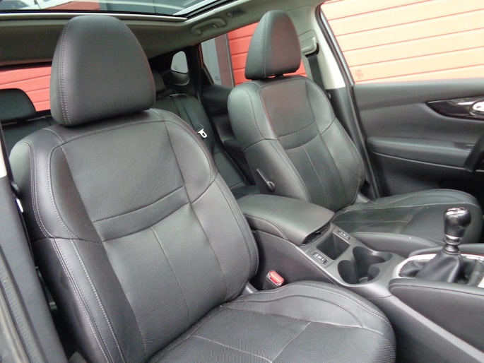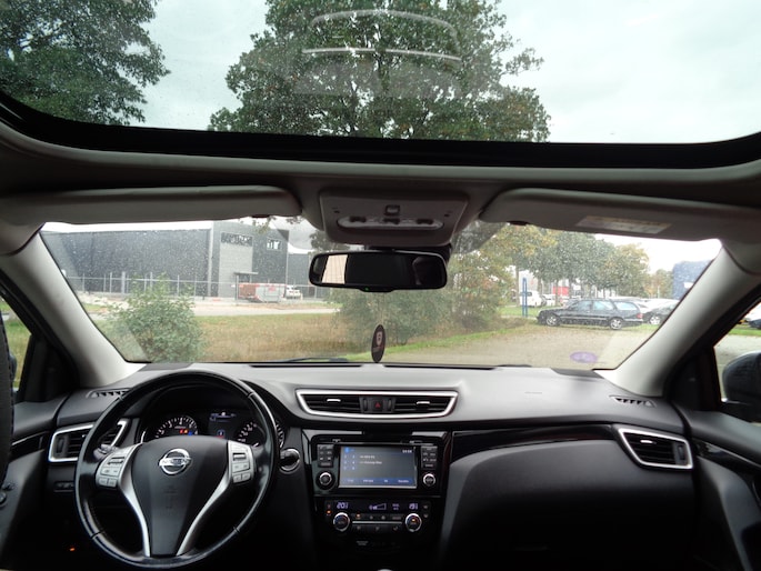 Het unieke van Japanse auto's als deze Nissan Qashqai is dat ze zo goed doordacht zijn. Ieder onderdeel is doorontwikkeld, maar tegelijk is deze auto meer dan de optelsom van al zijn onderdelen. Deze auto biedt stijl, klasse maar bovenal kwaliteit. In deze auto vindt u een benzinemotor en een handgeschakelde zesversnellingsbak. Lederen bekleding is in deze rijk uitgeruste auto ook aanwezig. Een weldaad voor u en uw bijrijder: deze Nissan Qashqai heeft verwarmbare voorstoelen. Het interieur lijkt groter en ruimtelijker dankzij het glazen panoramadak. Tot de voorzieningen van deze auto behoren 19 inch lichtmetalen velgen, LED koplampen, donker getint glas achter en in delen neerklapbare achterbank.