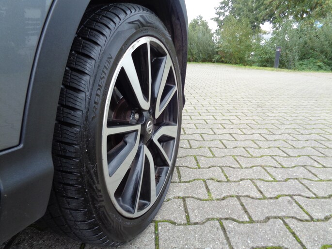 De nieuwste veiligheidssystemen komen in deze Nissan Qashqai samen. De actuele snelheidslimiet, een inhaalverbod en andere verkeersborden; de verkeersborddetectie ondersteunt u tijdens elke rit. Deze Nissan Qashqai is ook behulpzaam als het gaat om een rechte koers. Het Lane-keeping systeem signaleert en corrigeert als u onbedoeld de rijstrooklijnen dreigt te overschrijden. Bij concentratieverlies van de bestuurder geeft vermoeidheidsherkenning automatisch een waarschuwingssignaal. Dankzij veiligheidsvoorzieningen als dodehoekdetectie, hill hold functie, autonoom remsysteem en bandenspanningcontrolesysteem, bent u steeds veilig onderweg.