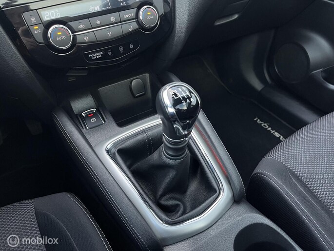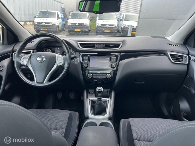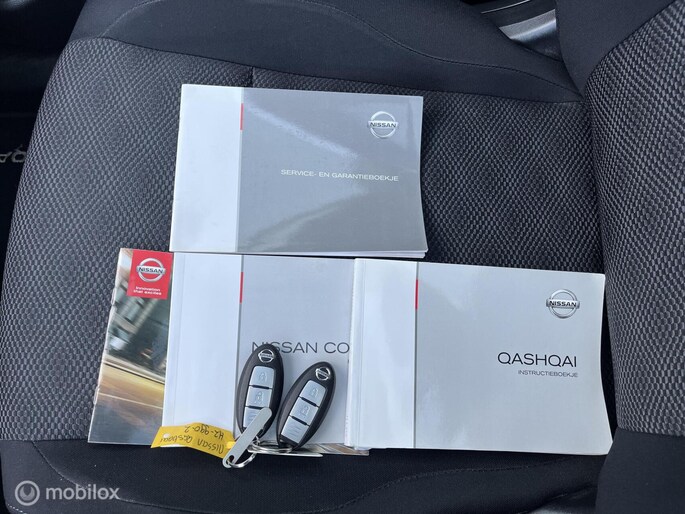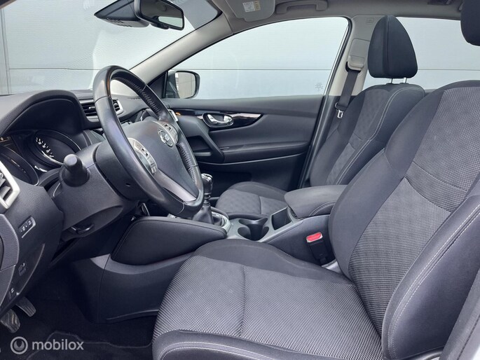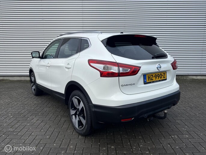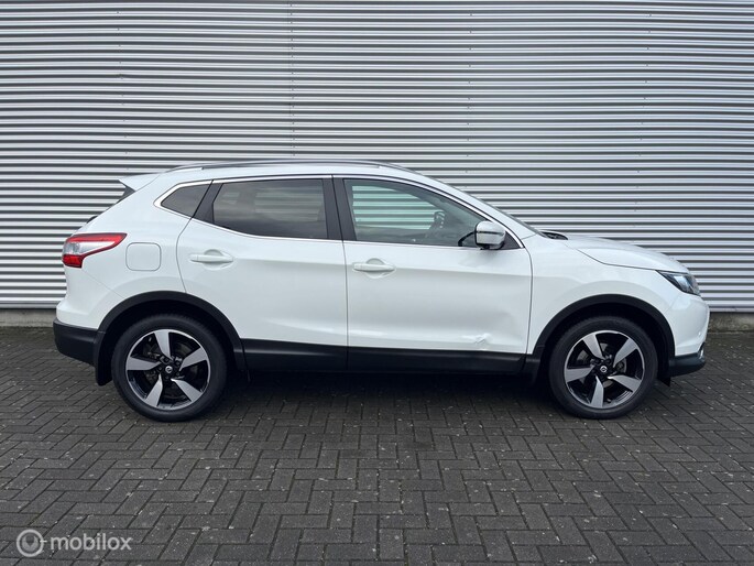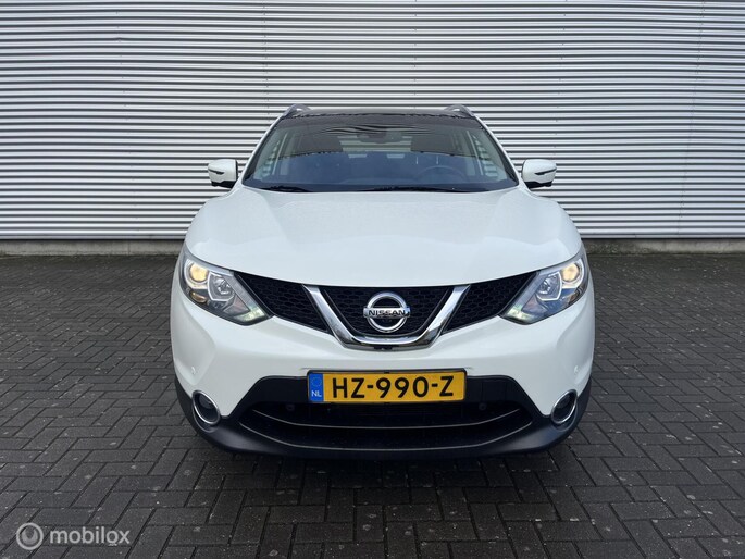 Een mooie Nissan Qashqai met opties zoals: Climate control, Cruise control, Panorama dak, Navigatiesysteem, Achteruitrijcamera, Rondomzicht camera, Multifunctioneel stuurwiel, Bestuurdersstoel in hoogte verstelbaar, Keyless entry, Keyless start, Lichtmetalen velgen, Trekhaak