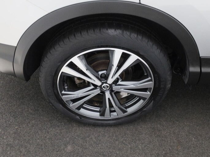 Zoals u mag verwachten van deze Nissan Qashqai is hij uitgerust met een reeks aan actieve veiligheidssystemen. Dat de auto steeds meer taken van de bestuurder overneemt, merkt u bijvoorbeeld aan het systeem voor verkeersbord-detectie in deze Nissan. Deze Nissan Qashqai is ook behulpzaam als het gaat om een rechte koers. Het Lane-keeping systeem signaleert en corrigeert als u onbedoeld de rijstrooklijnen dreigt te overschrijden. Brake assist herkent een noodsituatie en voert de remdruk op om de remweg te verkorten. U bent mede dankzij hill hold functie en bandenspanningcontrolesysteem steeds veilig onderweg.