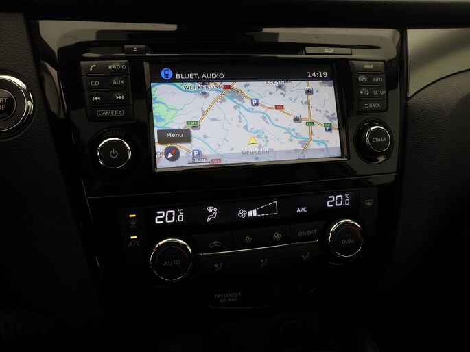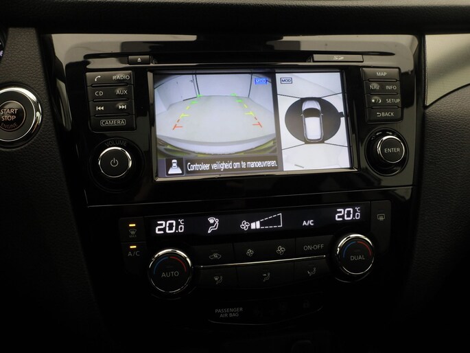 De 360 graden camera biedt een beter zicht bij slechte weersomstandigheden, waardoor u beter kan anticiperen op mogelijke gevaren. U rijdt snel, zuinig en zeker naar uw bestemming met het full map navigatiesysteem. Bij de luxe van deze auto hoort ook automatische airconditioning. Audio-aanpassingen doen zonder de weg uit het oog te verliezen? Daar zorgt de audiobediening op het stuur voor! Liever gepiep dan gekraak? Dan zult u blij zijn met de aanwezige parkeersensoren! U bent in deze Nissan ook voorzien van regensensor, cruise control, keyless entry, automatisch dimmende binnenspiegel en verstelbaar stuur.